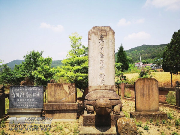 郎當(dāng)驛位于梓潼縣演武鎮(zhèn)境內(nèi),四周群峰聳立,景色美麗?,F(xiàn)存(清)光緒二十年(公元1894年)《唐明皇幸蜀聞鈴處》石碑一通。碑座為一只石雕“晶質(zhì)”,邊鐫刻回紋,中部有漩渦紋飾。伏著一只巨大的貝屓,馱著高2.6米的石碑,正中陰刻正楷“唐明皇幸蜀聞鈴處”八字。碑石側(cè)題:“大清光緒二十年歲次甲午仲夏知梓潼縣事昆明桂梁材立”。1985年6月,梓潼縣人民政府將此公布為文物保護(hù)單位。