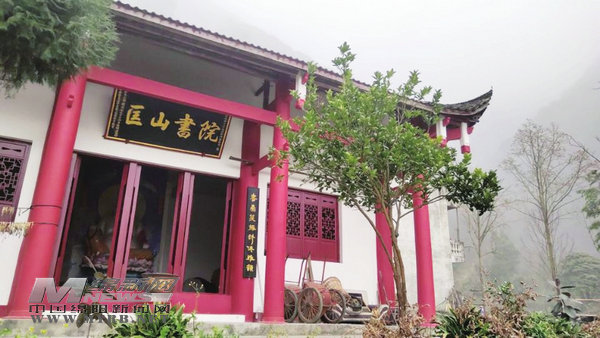 從大康鎮(zhèn)向佛爺洞方向前行數(shù)公里,從正在建設(shè)的綿九高速公路的橋邊右拐,再前行數(shù)公里,就來到了山坳中的匡山書院??锷綍鹤湓诎肷窖钠降厣希澈蟮凝堥T山脈山勢險峻,一旁山頭高聳。當(dāng)?shù)貍髡f1000多年前,李白就曾經(jīng)在這里的寺廟中讀書。