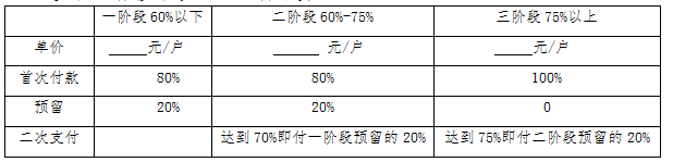張貼來(lái)訪不遇不高于:1元/戶; 嚴(yán)重隱患整改不高于:5元/戶。