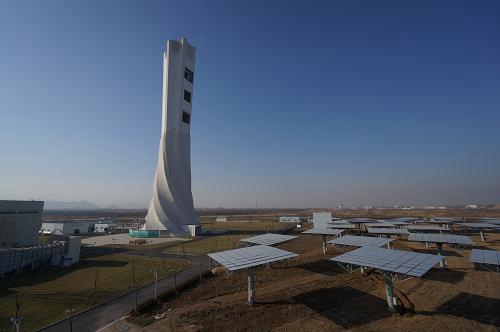 大浮坨太陽能吸熱塔建成時外觀。新華社記者李欣攝