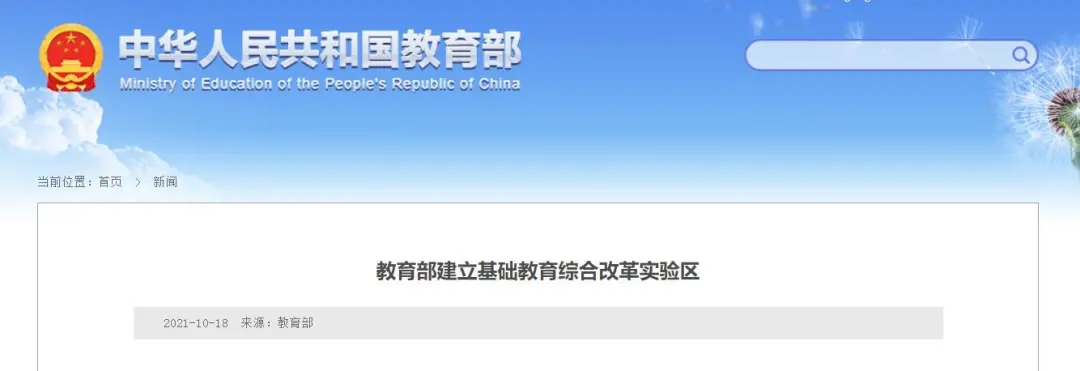 18日上午,教育部官網(wǎng)還發(fā)布了一則題為《教育部建立基礎(chǔ)教育綜合改革實驗區(qū)》的消息。