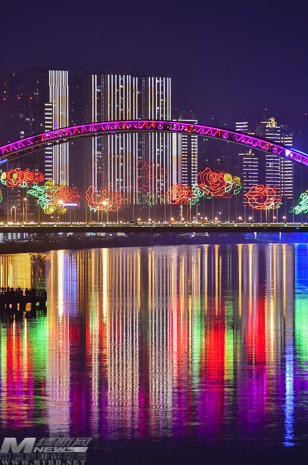 璀璨的城市夜景(綿陽(yáng)日?qǐng)?bào)社融媒體記者王勇攝)