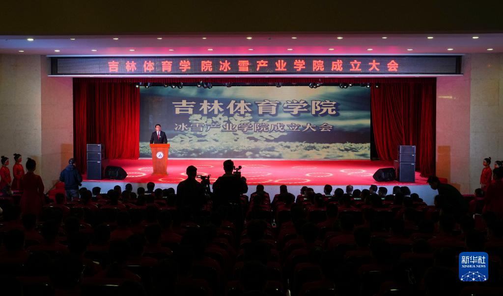 這是10月25日拍攝的吉林體育學(xué)院冰雪產(chǎn)業(yè)學(xué)院成立大會(huì)現(xiàn)場(chǎng)。