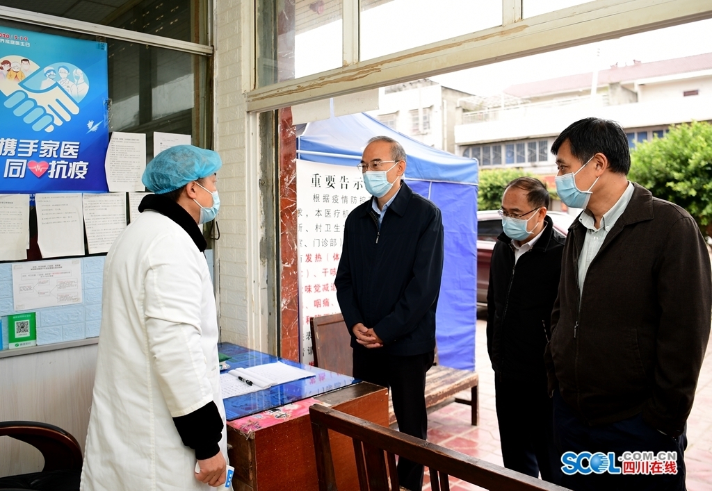當日上午,黃強前往渝蓉高速簡陽服務(wù)區(qū),察看戴口罩、掃碼測溫等防控措施落實情況,叮囑工作人員保持警覺,守好疫情外防輸入前沿關(guān)口。在樂至縣高寺鎮(zhèn)場鎮(zhèn),黃強走進餐館、茶館、超市、藥店、肉鋪等地,提醒大家不扎堆少聚集、勤洗手戴口罩,切實做好個人防護。在高寺鎮(zhèn)來龍村,黃強向村支書了解停辦壩壩宴、縣鄉(xiāng)部署檢查等情況,并到留守老人家中看望,要求村組干部用心用情用力做好孤寡老人、留守老人和兒童等關(guān)愛服務(wù)工作,及時紓困解難。黃強還前往簡陽市禾豐鎮(zhèn)普安社區(qū)衛(wèi)生院,了解預(yù)檢分診和發(fā)熱患者接診處置規(guī)定落實情況,要求嚴格把好預(yù)檢分診“第一道關(guān)”,切實發(fā)揮好“哨點”作用。