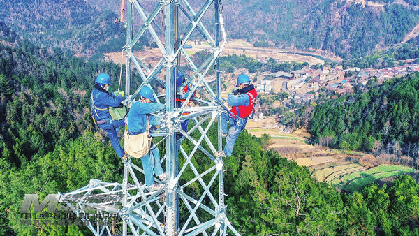 11月25日,在北川羌族自治縣永昌鎮(zhèn)新華村,國網(wǎng)綿陽供電公司永昌供電所“電管家”丁昌國、李曉西,正在為該村陽光生態(tài)園家庭農(nóng)場凍庫架設(shè)160米絕緣線,并安裝一只三相電表,為凍庫做好電力保障。