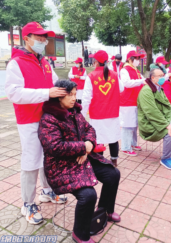 12月11日8時許,游仙區(qū)涪江街道劍南路東段社區(qū)新時代文明實踐站聯(lián)合四川中醫(yī)藥高等??茖W校志愿者們,在社區(qū)文化體育廣場開展按摩、艾灸、量血壓、測血糖等義診志愿服務活動,通過活動進一步弘揚“奉獻、友愛、互助、進步”志愿服務精神。