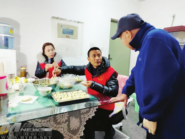“香!好吃!冬至節(jié)我能和老伴吃上熱騰騰的餃子,要謝謝大家!”12月21日,文正平一行人帶著面和油等慰問品開展關(guān)愛老人志愿服務(wù)活動。在現(xiàn)場,大家有的切餡兒、有的和面、有的搟皮兒、有的包餃子,講著各自日常故事、交流著冬至過節(jié)習(xí)俗、相互學(xué)習(xí)包餃子技藝,說說笑笑,其樂融融(如圖)。