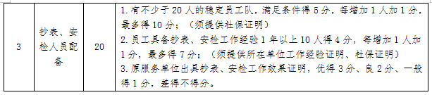 7、評審小組根據(jù)比選文件規(guī)定的標準和最后報價進行綜合評審,按綜合得分由高到低順序推薦綜合排名前4的申請人為中選候選人。得分相同時以報價優(yōu)先,報價也相同時,由比選人自行確定。