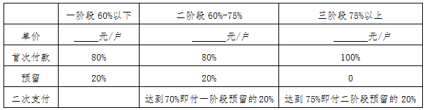 張貼來訪不遇不高于:1元/戶; 嚴重隱患整改不高于:5元/戶。