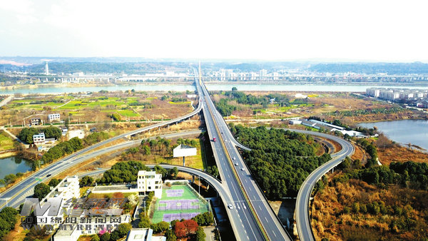 從這里再往下游,就是綿延數(shù)公里的涪江大堤以及江邊新建的從園藝山跨越涪江的科技城大道。