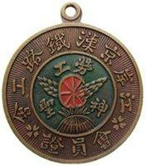 證章長約10.5厘米,寬約3.5厘米,正面外圓有“江岸京漢鐵路工會會員證”字樣,中央為“雙翼車輪形”圖案。