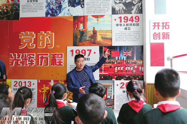 在警鐘街小學,少先隊員們?nèi)媪私恻h的光輝歷程。(視覺綿陽覃麗華攝)