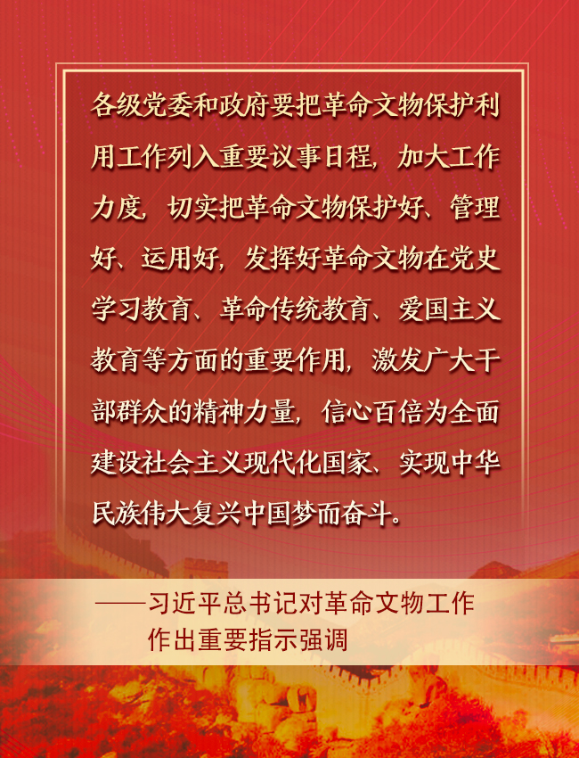 近日,習(xí)近平總書記對革命文物工作作出重要指示,深刻闡明革命文物工作的重大意義、目標(biāo)任務(wù)和基本要求,為做好新時代革命文物工作提供了根本遵循。