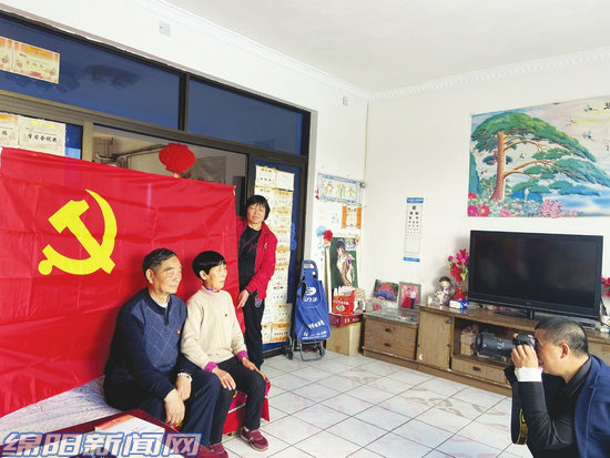 “今年是中國(guó)共產(chǎn)黨成立100周年,我們今天來(lái)家里給您和黨旗拍張合影,把這最美好的瞬間留下來(lái)……”連日來(lái),安州區(qū)桑棗鎮(zhèn)黨建辦工作人員和攝影師一道,帶著鮮紅的黨旗,背起照相機(jī),上門為黨員拍攝與黨旗合影照。4月份以來(lái),桑棗鎮(zhèn)開展“我和黨旗合個(gè)影,對(duì)黨說(shuō)句心里話”主題黨日活動(dòng),黨建辦和鎮(zhèn)攝影協(xié)會(huì)工作人員上門為轄區(qū)在家黨員拍攝與黨旗合影主題照片,引導(dǎo)黨員銘記中國(guó)共產(chǎn)黨誕生的艱辛歷程,守初心、擔(dān)使命,激發(fā)廣大黨員奮發(fā)作為,慶祝中國(guó)共產(chǎn)黨成立100周年。據(jù)桑棗鎮(zhèn)黨委負(fù)責(zé)人介紹,開展“我和黨旗合個(gè)影,對(duì)黨說(shuō)句心里話”主題黨日活動(dòng),旨在引導(dǎo)廣大黨員干部進(jìn)一步學(xué)史明理、學(xué)史增信、學(xué)史崇德、學(xué)史力行,現(xiàn)已為轄區(qū)200余名黨員與黨旗合影,預(yù)計(jì)5月底全鎮(zhèn)黨員全部參加。