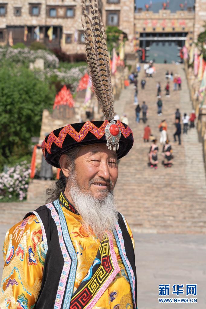 這是5月9日在四川省阿壩藏族羌族自治州茂縣拍攝的參與中國古羌城開門儀式演出的羌族老人。新華社記者 胥冰潔 攝