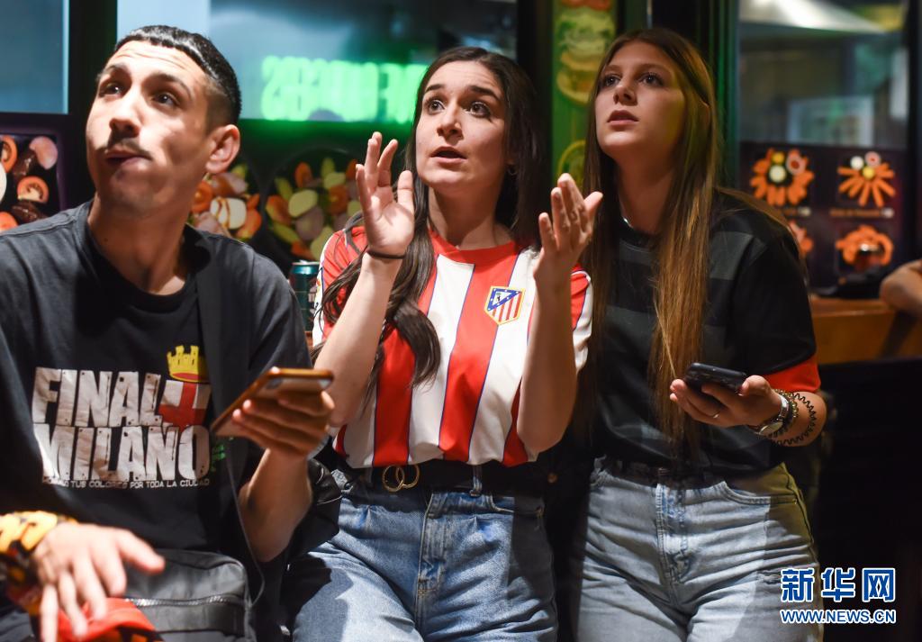 5月22日,馬德里競技隊(duì)球迷在馬德里一家酒吧內(nèi)觀看比賽。