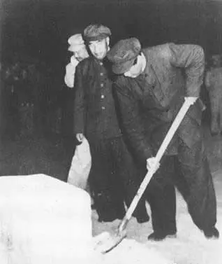 周恩來此行專程來視察人民英雄紀念碑修建的工程進度。他看到工人們在室外冒著嚴寒工作非常辛苦,專門叮囑后勤人員每天下午必須按時把燒酒發(fā)放給石匠,而且一定要看著他們把酒喝下去。當時,周總理還握住石匠的手說:“英雄們創(chuàng)造了歷史,雕刻家們創(chuàng)造英雄,你們的雙手在雕刻歷史呀。”