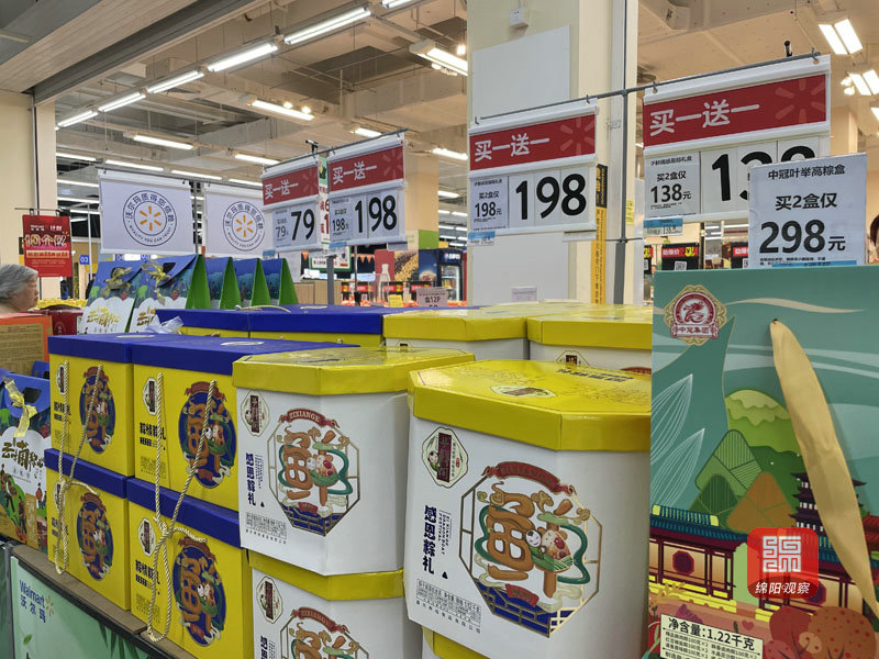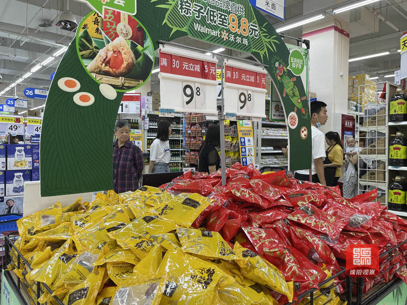6月10日,記者在涪城區(qū)一家沃爾瑪超市和愛達樂蛋糕店看到,各種口味的粽子已經(jīng)大量上市并且擺在顯眼位置。在沃爾瑪超市,各色的粽子按照口味、品牌擺放在不同的展架上,散裝粽子價格在每公斤9.8元至22.9元不等;真空禮品粽子價位從79元至298元每盒不等。為吸引市民購買,超市也開展了相應(yīng)的促銷活動,因粽子口味更加偏向傳統(tǒng),所以深受老年群體的喜愛。