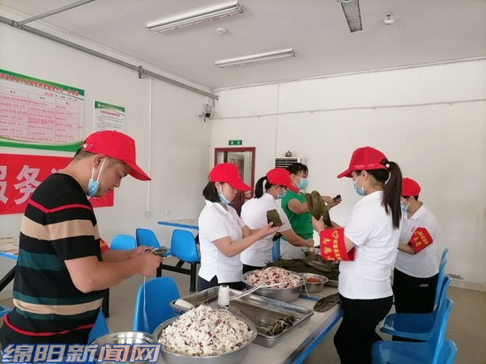 志愿者為敬老院老人包粽子(綿陽日報社融媒體記者 田明霞 攝)