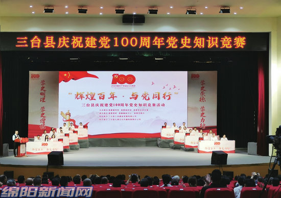 6月18日,由三臺(tái)縣委宣傳部、縣委組織部、縣委黨史研究室牽頭組織的三臺(tái)縣工投杯“輝煌百年·與黨同行”慶祝建黨100周年黨史知識(shí)競(jìng)賽決賽在梓州大劇院舉行(如圖)。