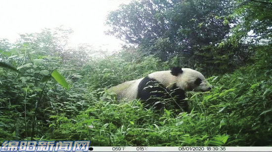從畫面中可以看到,一只野生大熊貓在林間覓食。白天午間時分,另外一只野生大熊貓又從紅外相機面前經(jīng)過,短暫停留后鉆進了草從里。另一個點位的紅外相機也拍到一只野生大熊貓。