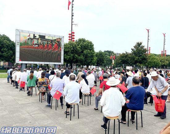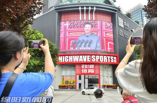 市民在戶外大屏觀看慶祝大會直播(綿陽日報社融媒體記者 王勇 攝)