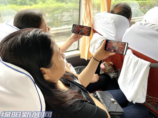 出差途中幾名黨員通過手機(jī)觀看慶祝大會直播(綿陽日報社融媒體記者 劉佳 攝)