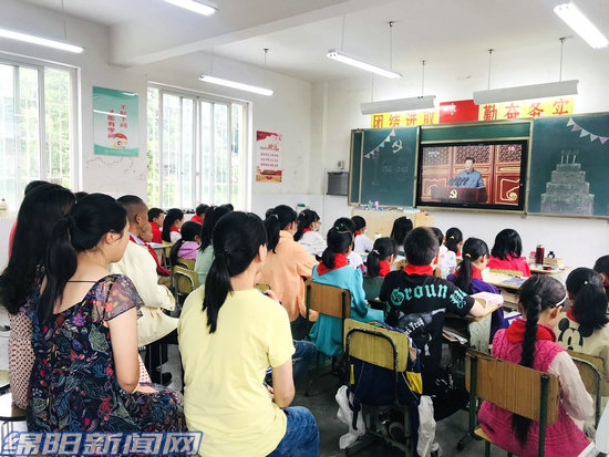 平武一小學(xué)組織收看慶祝大會直播(綿陽日報社融媒體記者 任露瀟 攝)