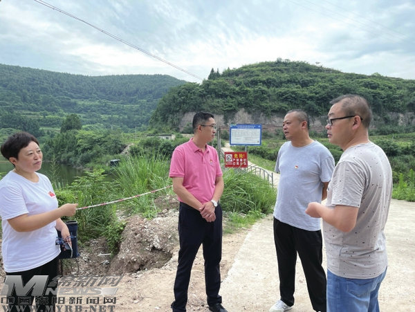 龍臺村干部在水庫整治現場協(xié)調解決問題