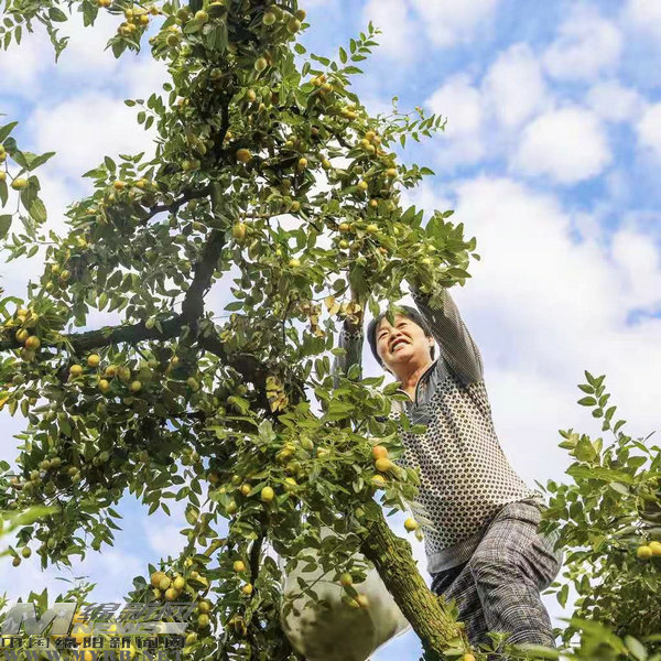 新德鎮(zhèn)嶄山村村民正在管護(hù)米棗 劉玉明 攝