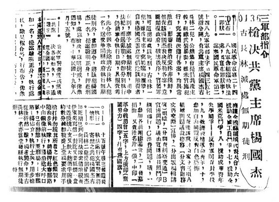 槍殺楊國(guó)杰的新聞報(bào)道(翻拍自黨史資料)