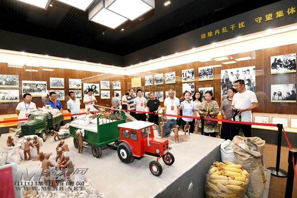 采訪團(tuán)成員在賈家莊村村史館參觀
