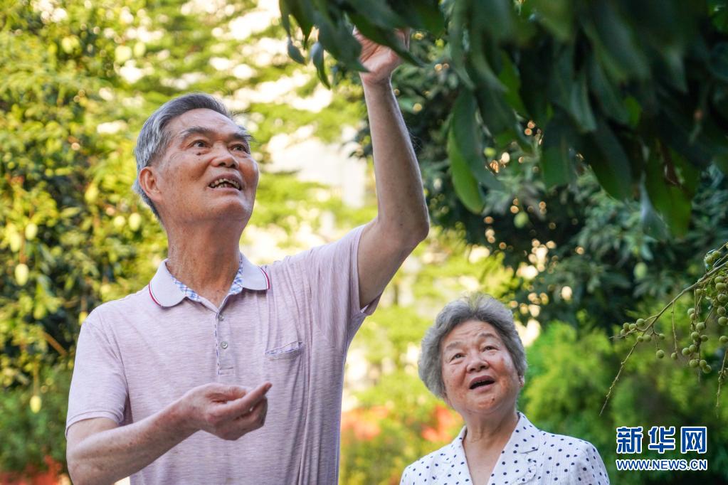 麥賢得與老伴李玉枝在小區(qū)里散步(5月22日攝)。新華社發(fā)(欒鋮 攝)