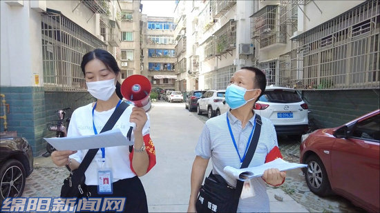 社區(qū)網(wǎng)格員用“小喇叭”宣傳防疫知識