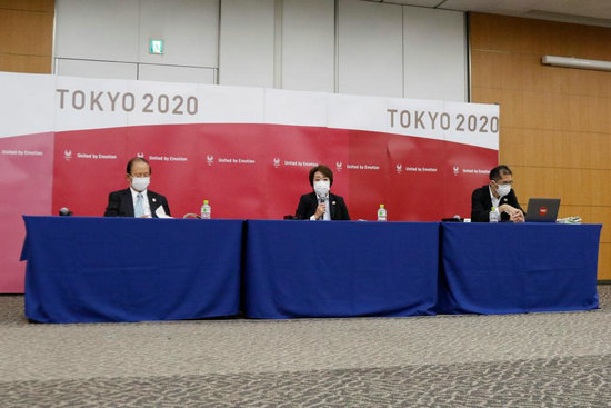 8月16日,東京奧組委主席橋本圣子(中)在新聞發(fā)布會(huì)上發(fā)言。