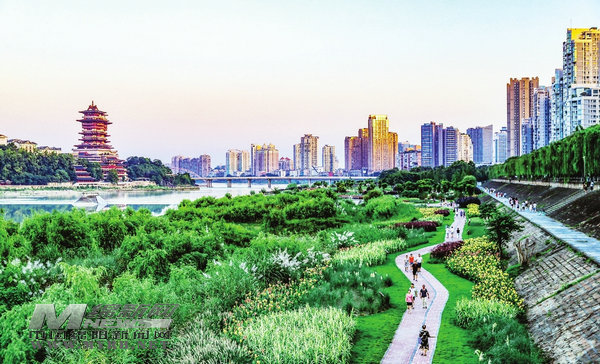 創(chuàng)新活力涌動(dòng)的綿陽(yáng)城風(fēng)光秀美,位于市區(qū)的越王樓與現(xiàn)代都市景象融為一體。(蒲滔 攝)