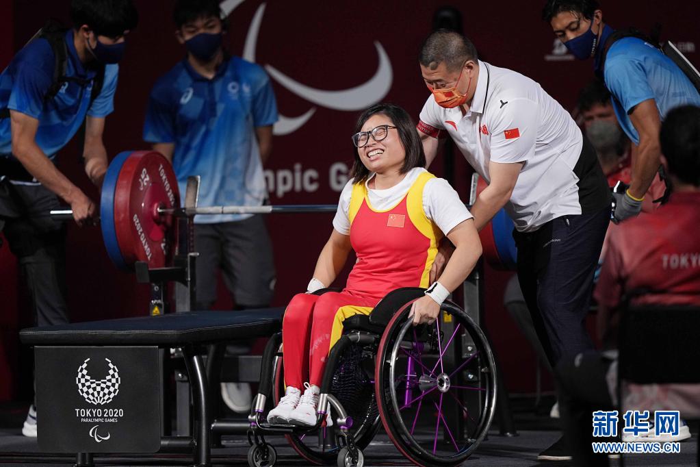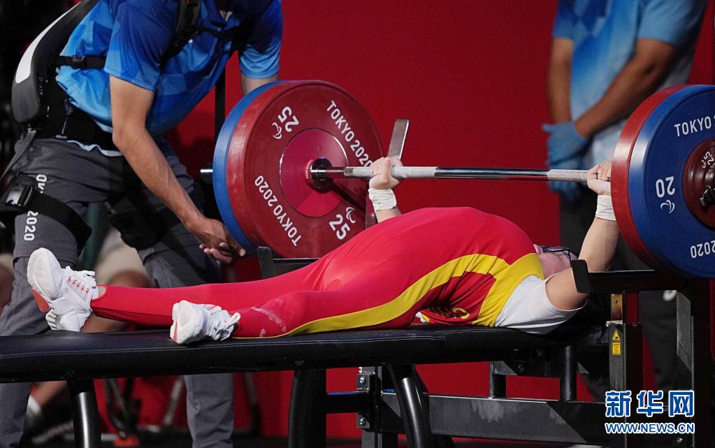 當(dāng)日,在東京殘奧會舉重項目女子50公斤級決賽中, 中國選手胡丹丹獲得金牌。