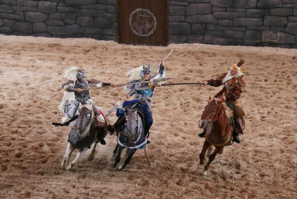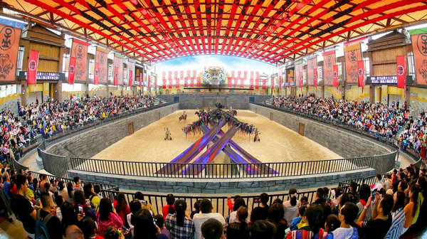 山河錦繡,駿馬馳騁,英雄集結(jié),虎嘯龍吟。在氣勢(shì)恢宏的臥龍校場(chǎng)中,驚心動(dòng)魄的三國(guó)故事正在上演。據(jù)悉,《馬秀三國(guó)》是全國(guó)首創(chuàng)以三國(guó)為題材的史詩(shī)級(jí)馬術(shù)表演,不僅生動(dòng)展現(xiàn)五虎上將與寶馬名駒的沙場(chǎng)英姿,帶領(lǐng)你縱橫金戈鐵馬的烽煙戰(zhàn)陣,更能感受三國(guó)時(shí)期的戰(zhàn)火紛飛和英雄壯歌。