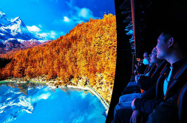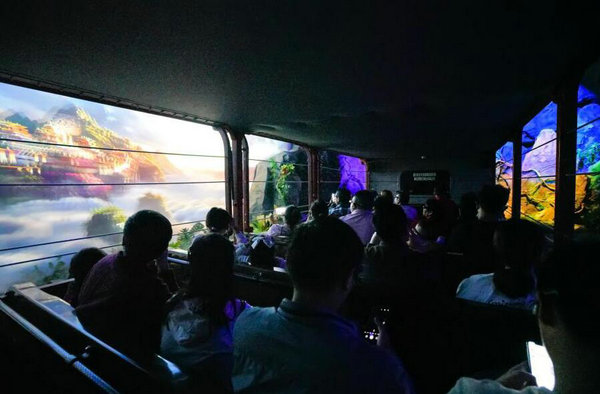 除了能觀看精彩演藝之外,記者還來(lái)到“藏羌秘境區(qū)”,體驗(yàn)了一次投資過(guò)億的超大型自然體驗(yàn)類(lèi)乘騎王牌項(xiàng)目《天路歷險(xiǎn)》,我們乘坐VR軌道列車(chē)在真實(shí)場(chǎng)景與高科技影音藝術(shù)間穿梭,通過(guò)聲、光、電、3D到6D的立體展現(xiàn),感受從川西到拉薩天路歷險(xiǎn)的驚心動(dòng)魄,帶來(lái)身臨其境的絕妙感受。
