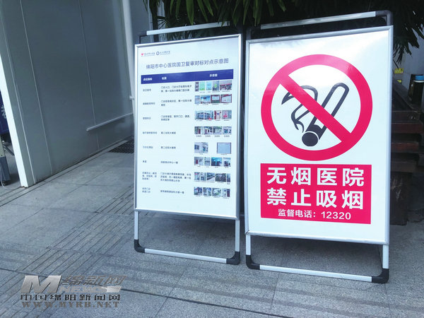 中心醫(yī)院門診大樓前醒目的禁煙標(biāo)識(shí)牌