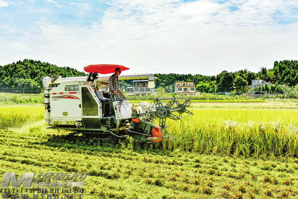 新德鎮(zhèn)農(nóng)戶正在機(jī)收水稻