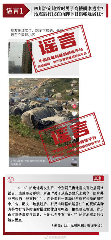 四川瀘定地震時(shí)男子高樓跳傘逃生?臺(tái)風(fēng)“梅花”登陸后,浙江寧波北侖、慈溪被水淹?水庫(kù)決堤了?貴陽(yáng)女子向志愿者跪求物資?貴陽(yáng)一住戶在家不戴口罩被抓走?中國(guó)互聯(lián)網(wǎng)聯(lián)合辟謠平臺(tái)盤(pán)點(diǎn)9月熱傳謠言,遏制謠言傳播空間,凈化網(wǎng)絡(luò)生態(tài),營(yíng)造風(fēng)清氣正的網(wǎng)絡(luò)環(huán)境。#讓網(wǎng)絡(luò)謠言無(wú)處遁形#@中央網(wǎng)信辦舉報(bào)中心 @微博辟謠 戳圖看詳情↓↓