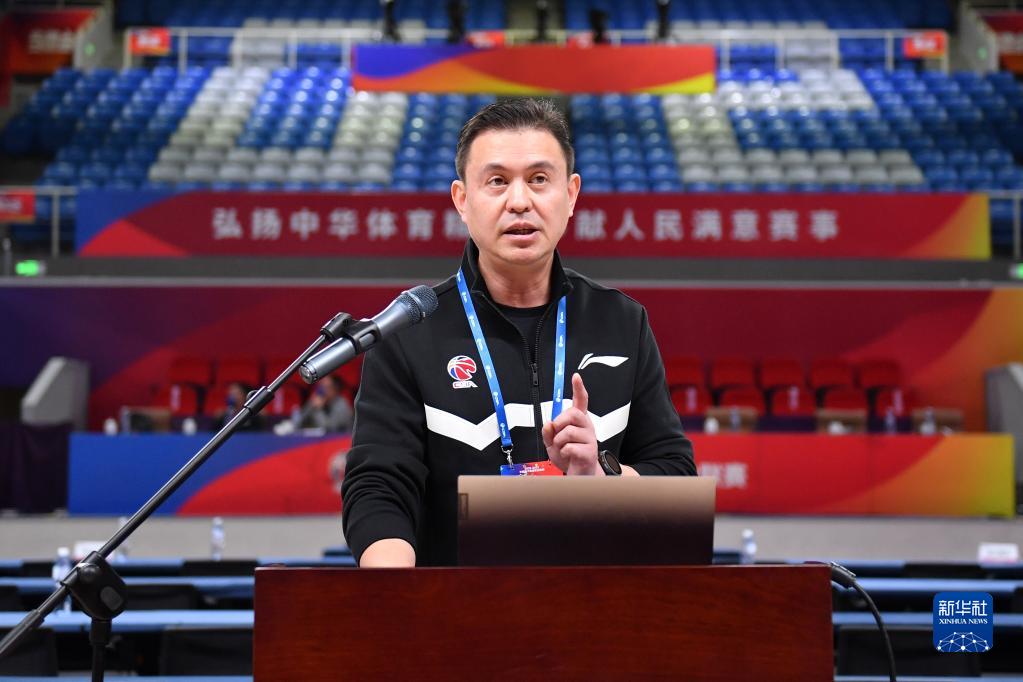 10月9日,裁判員段鑄在動員會上講解新賽季競賽規(guī)程及規(guī)則變化和執(zhí)裁重點。新華社記者 陳振海 攝