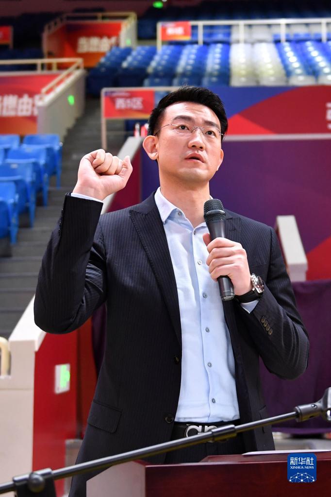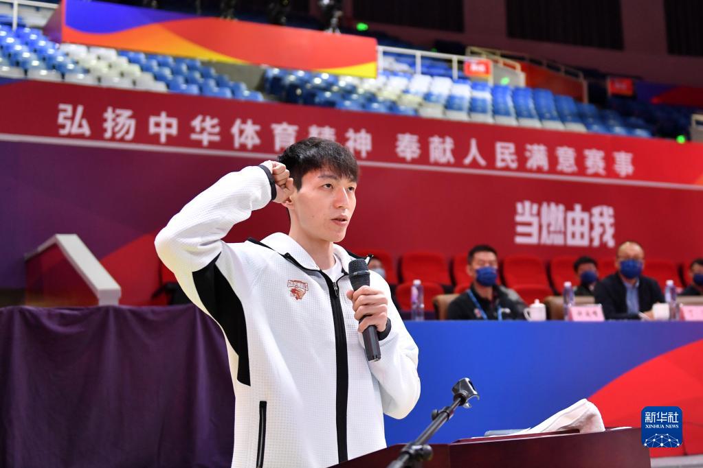 10月9日,球員代表吳前在動員會上宣誓。新華社記者 陳振海 攝