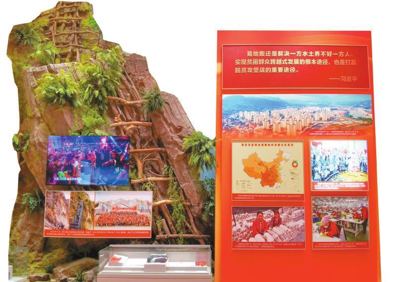 金秋北京,“奮進(jìn)新時(shí)代”主題成就展,展廳內(nèi)三張穿越時(shí)空的對比照吸引了人們的目光:第一張,垂直般攀附在懸崖上的藤梯令人心驚膽戰(zhàn);第二張,結(jié)實(shí)牢靠的鋼梯帶給攀緣者安全出行;第三張,易地扶貧搬遷群眾用上了祖祖輩輩想都想不到的樓梯。