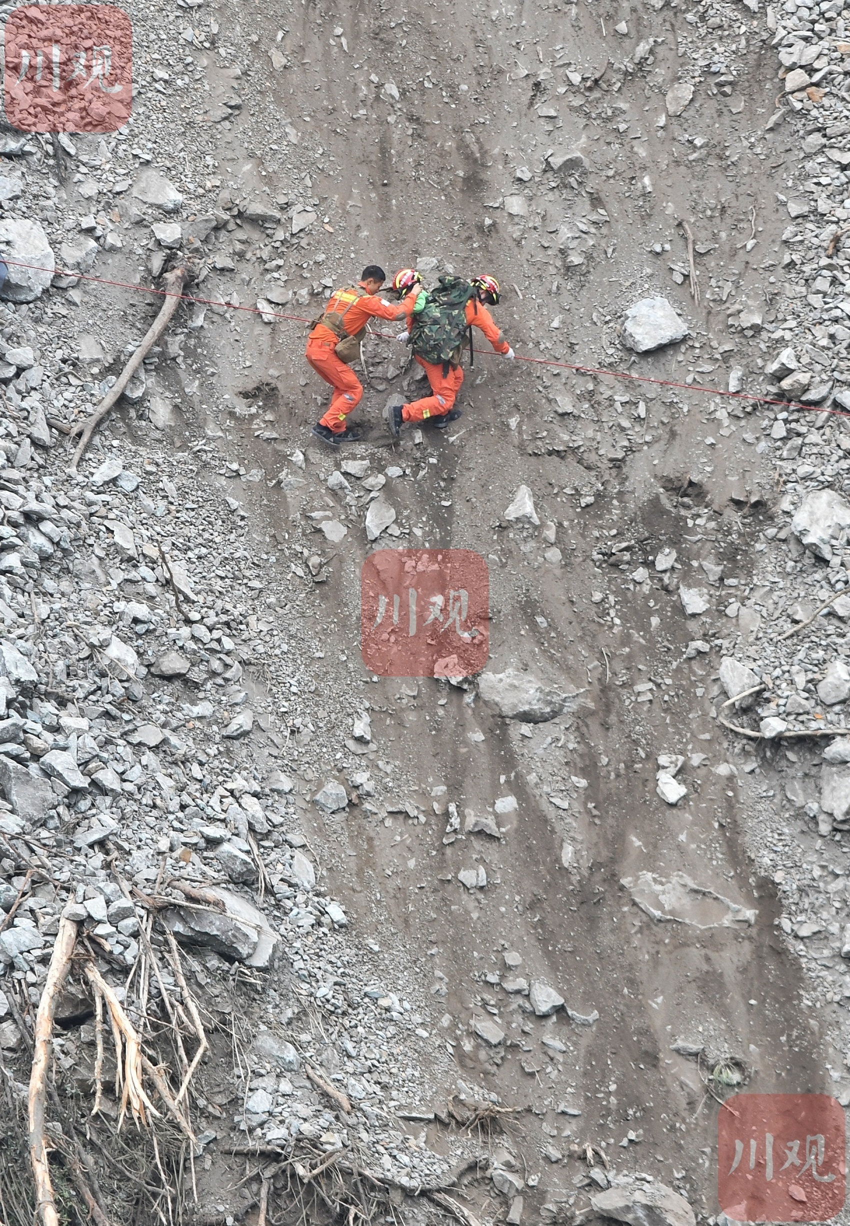 震后營救,救援人員背負(fù)兩歲幼童穿越百米垂直滑坡帶。華小峰 攝