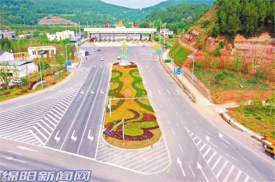 駕車(chē)沿綿西高速前往鹽亭,一出“鹽亭”收費(fèi)站,出口外新近打造的景觀漂亮、大氣,令人眼前一亮!