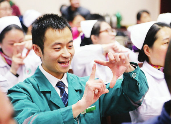 醫(yī)者所能提供的醫(yī)療技術是有限的,但有溫度的醫(yī)療服務能為患者帶來的心靈撫慰卻是無盡的。曾經,由于交流障礙,聽障人士就醫(yī)成為一大難題。為確保聽障群體的順利就醫(yī),綿陽市中醫(yī)醫(yī)院主動將服務關口前移,聯(lián)合市聾人協(xié)會對門診咨詢等科室的醫(yī)護人員開展手語培訓,就禮貌用語、常用稱謂、常見臨床表現(xiàn)、檢查治療方法、就診流程等基本用語進行手把手教學,以實實在在的人性化服務為特殊群體看病就醫(yī)搭建了溝通橋梁。