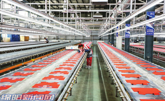 在青東壩工業(yè)區(qū)的三臺(tái)鞋服產(chǎn)業(yè)園,四川安吉納體育用品有限公司針車車間里,10多條生產(chǎn)線正有條不紊運(yùn)轉(zhuǎn),經(jīng)過拼縫、貼舌棉等29道工序后,一道鞋面工藝制作完成。該公司占地4.5畝,總投資達(dá)3.5億元,是一家綜合性體育運(yùn)動(dòng)裝備制造企業(yè),主要生產(chǎn)專業(yè)足球鞋、運(yùn)動(dòng)鞋等,年產(chǎn)成品鞋可達(dá)600萬雙。