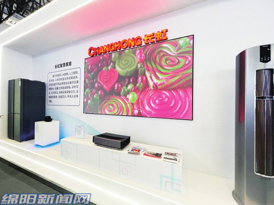 原標(biāo)題:長(zhǎng)虹展出120吋柔性巨幕全色激光電視